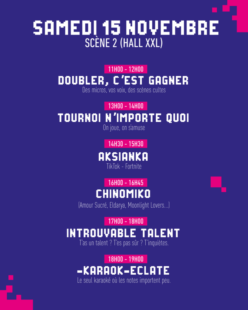 Les horaires des scènes d’Art to Play Nantes (15 et 16 novembre) sont disponibles ! Cette année la scène principale s’agrandit en Halle 4 et une nouvelle scène secondaire de 150 places voit le jour en Halle XXL.