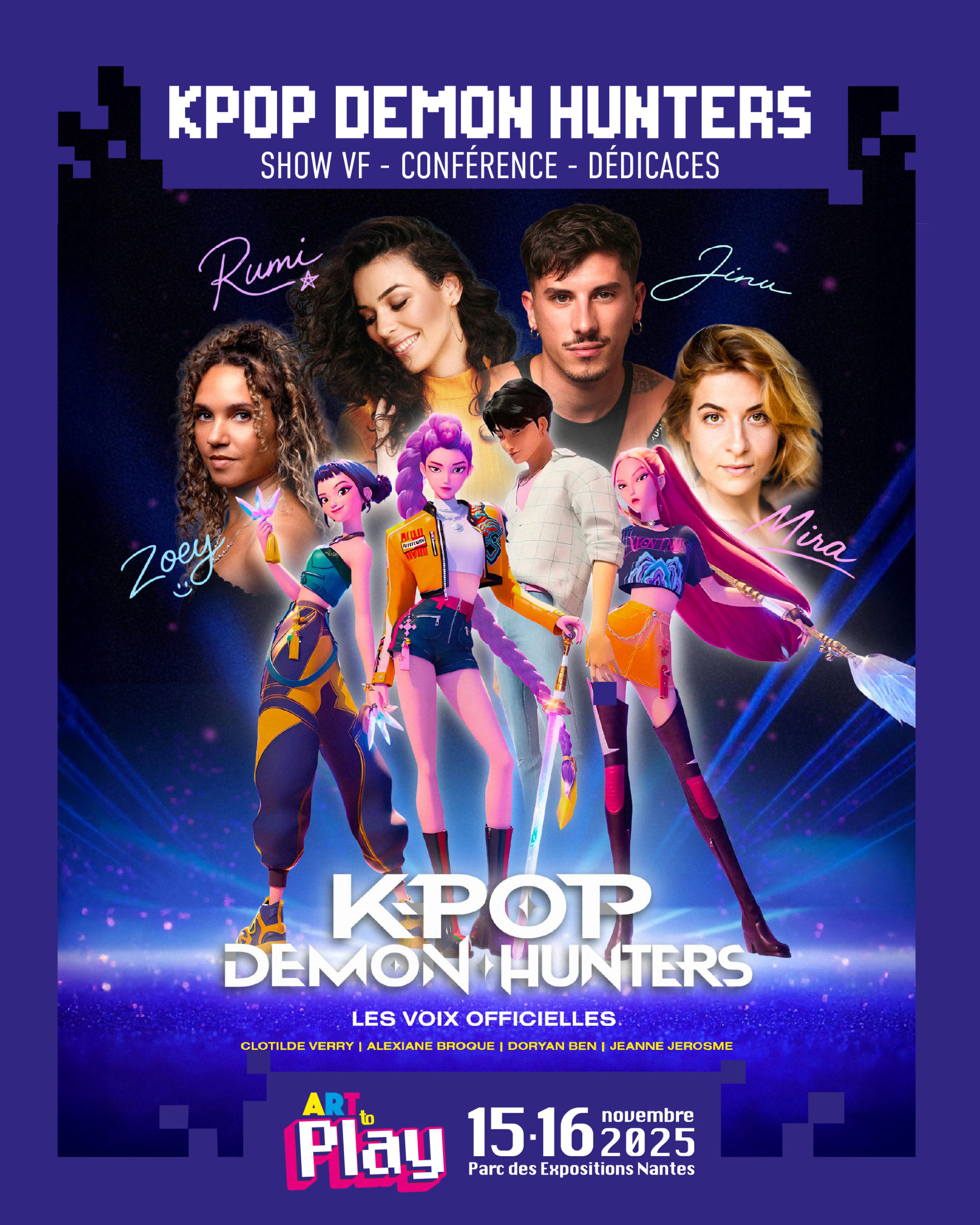 Les 4 chanteurs et chanteuses des voix officielles (VF) de Kpop Demon Hunters débarquent à Art to Play Nantes les 15-16 novembre pour un show, une conférence et des dédicaces.